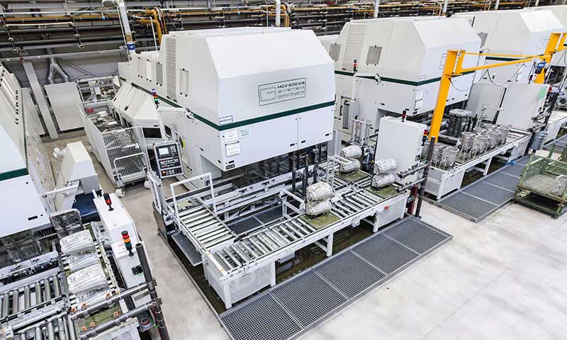 Als Systemlieferant kauft Grüner projektbezogen den Guss im Markt ein und liefert das fertig bearbeitete und gegebenenfalls montierte Bauteil an den Kunden. Die komplette Prozesskette ist Kernkompetenz des Unternehmens und wird mit eigenem Know-how abgebildet – von der Entwicklung über die Konstruktion bis hin zum fertigen Bauteil. Die eigens entwickelte Bearbeitungszentren-Lösung mit der Mehrspindelkopfbearbeitung ist hochflexibel und produktiv. Neu entwickelte Zusatzmagazine für die Bearbeitungswerkzeuge ermöglichen schnellstes Umrüsten (One-Piece-Flow). Die flexible Auslegung der mechanischen Bearbeitung sowie sämtlicher Folgeprozesse ermöglicht die Produktion von unterschiedlichsten Produkten mit großer Variantenvielfalt. Durch diese spezifische Auslegung der Fertigungs- und Prüfprozesse ist die Grüner Unternehmensgruppe Benchmark bei der Bearbeitung von Aluminium- und Magnesiumgussteilen.