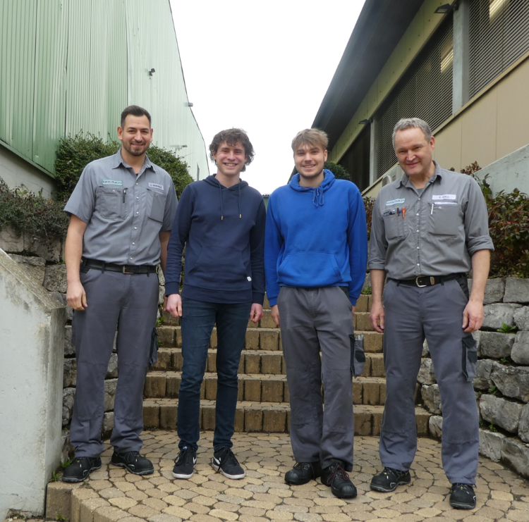 Von links nach rechts: Christian Brendle (Ausbildungsmeister), Linus Humm, Moritz Lang, Eberhard Gall (Ausbildungsmeister)